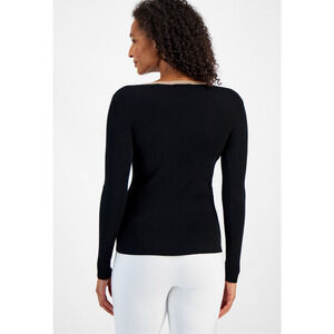T Tahari Women V-Neck Ribbed Sweater Black Size M * V-neck; pulls on * Contrast trim at neckline and center front * Long sleeves * Hand wash or dry clean * rayon/nylon