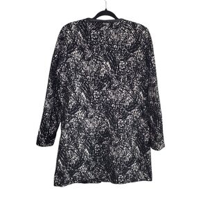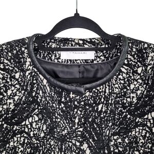 T Tahari Women's Black & White Knit Tweed Midweight Snap-Up Dressy Coat Size L