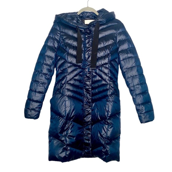T Tahari Women's Blue Long Puffer Jacket Down-Filled Lightweight size Small