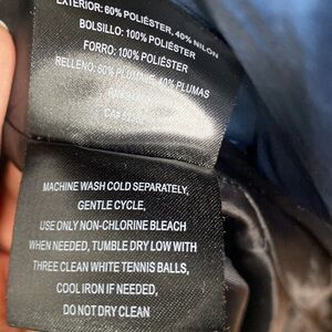 -Made of a 60% polyester/40% nylon shell, 60% down/40% feather fill.