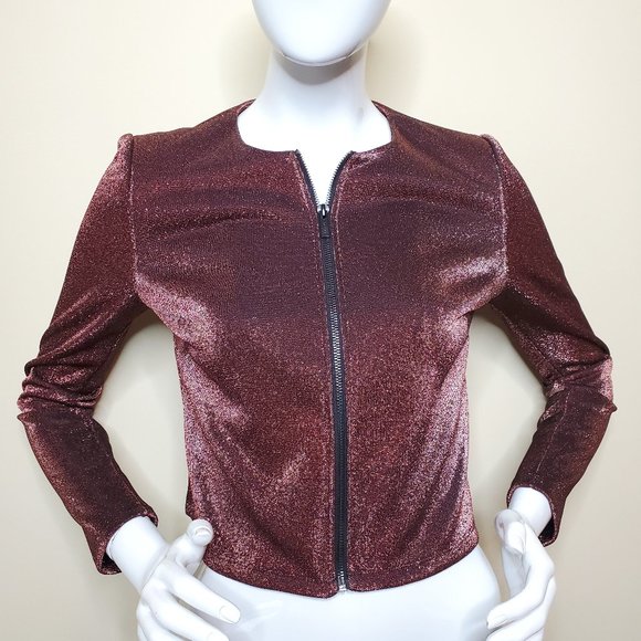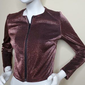 T Tahari Women's Bronze Shine Metallic Full Zip Cropped Jacket SZ XS