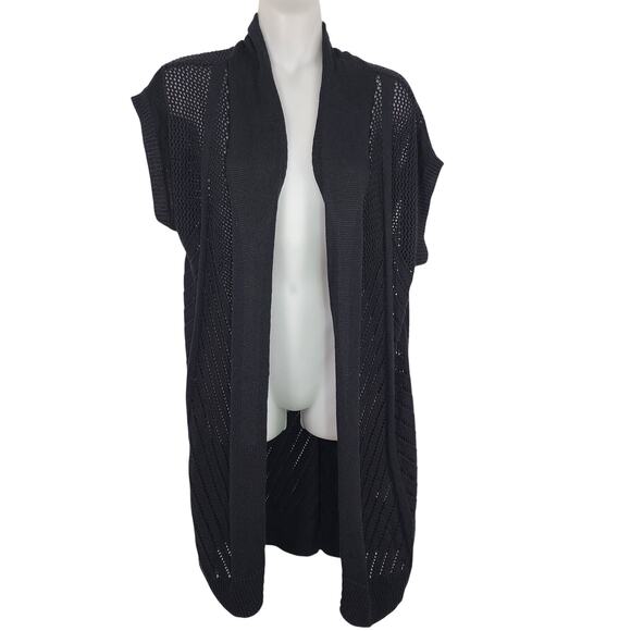 T Tahari Womens Cardigan Open Front Medium Long Vest Sleeveless Knit Minimalist