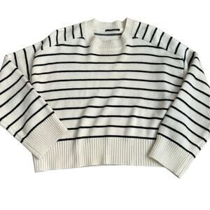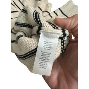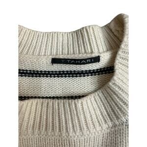 T Tahari Women's Cream Black Saddle Stripe Print Long Sleeve Sweater Size Medium