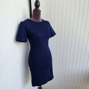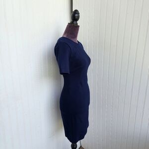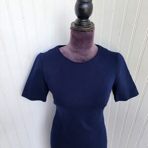 T Tahari Womens Dress Navy Blue Carrier Lined Short Sleeve Back Zip Stretch Sz 2