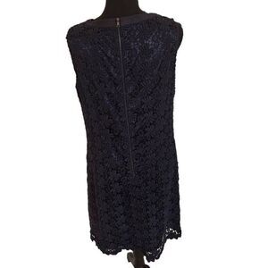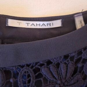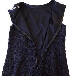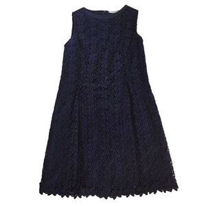 T Tahari Women's Floral Lace Overlay Sleeveless A-Line Dress Navy Blue Size 12