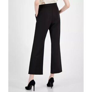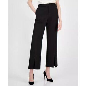 T Tahari Womens High Rise Slit Cuff Ankle Crop Wide Leg Pants Black Size 14 NWT