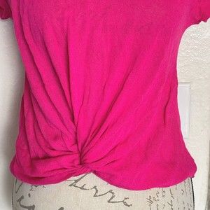 T Tahari Womens Pink Barbiecore Blouse Top Size XS Fuchsia Pink Twist Hem Front
