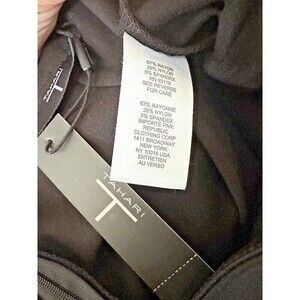 Elevate your wardrobe with this T Tahari black mini skirt, perfect for travel or modern occasions. The skirt features a zipper closure on the side and is made of comfortable polyester with a knit fabric type. The mid-rise skirt has a solid pattern and is adorned with button accents, two front pockets, and a stretchy fit. This skirt is easy to care for as it is machine washable and is available in size 6 for regular-sized women. It is perfect for summer and has a modern theme. Dont miss out on this stylish and versatile addition to your closet.