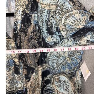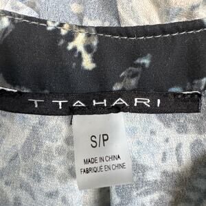 T Tahari Women's Ruffle Neck Blouse Blue Tone Paisley Print Size S NWT Office