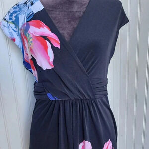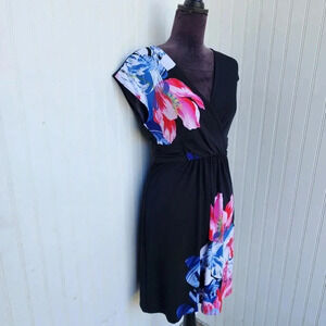 T Tahari Womens Sheath Knee Length Dress Blue Red Black Floral Stretch Zip Sz S