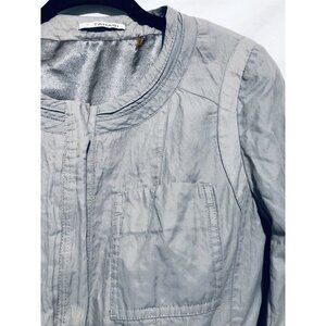 T Tahari Womens Small Gray Zip Jacket Wrinkled Cotton Metallic Boho