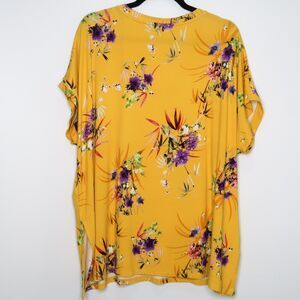 T Tahari Womens Top Plus Size 1X Yellow Purple Floral V-neck Feminine Office
