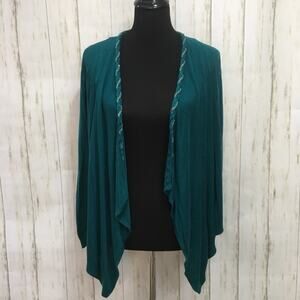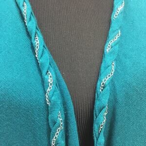 T Tahari green open cardigan with silver chain trim detail size Medium