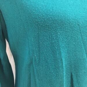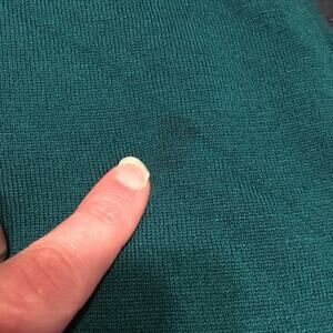 T Tahari gorgeous green open cardigan with silver chain detail along neckline and down open waterfall sides. Size M. Very good preowned condition. Some minor wash wear and one tiny spot on arm as shown. 70% rayon 40% polyester.