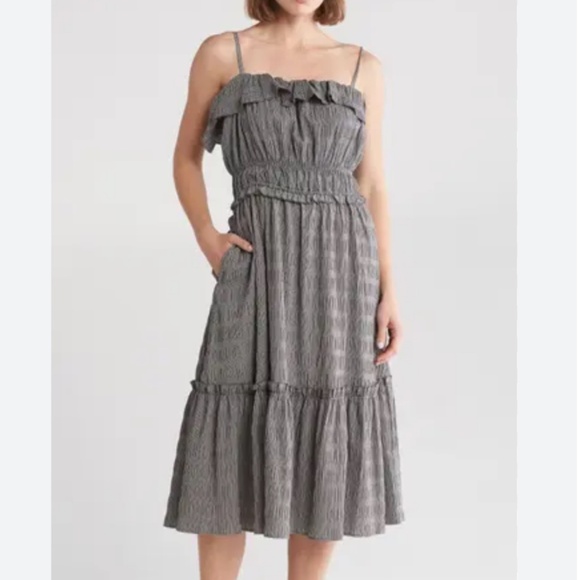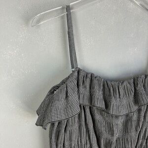T Tahari size M ruffle tiered gingham midi dress black lined spaghetti strap