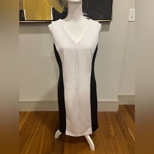 T Tahari black and white color block studded V-neck sheath dress, extremely flattering. This is brand new and has never been worn, size medium. NWT
