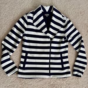T Talbots Navy White Striped Preppy Nautical Asymmetrical Zip Moto Jacket Small