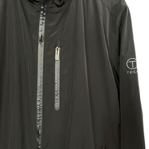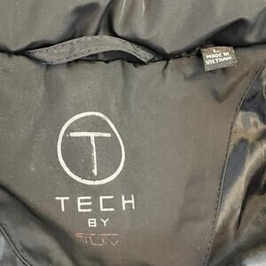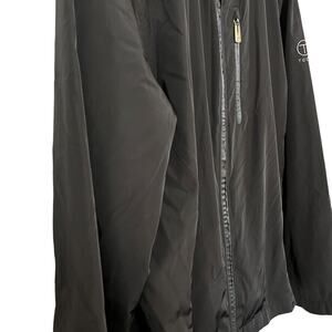 T Tech by Tumi Mens Black Full Zip Hooded Packable Jacket Windbreaker sz L