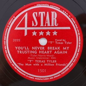 T Texas Tyler, Wrong Side Of Town /You'll Never Break 1950 10" 78 pm Record 1501