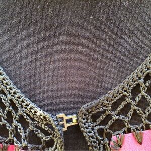 T &W Designs Colorblock Patchwork Faux Suede & Black Crochet Cardigan Size L