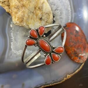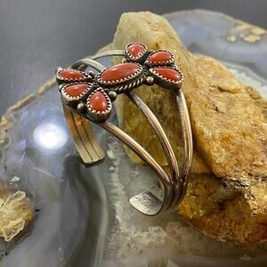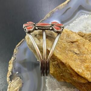Beautiful Sterling Silver 7 Coral Flower Split Shank Bracelet For Women, Signed by Native American Artist T. Yazzie.