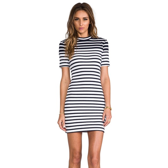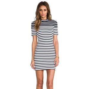T by Alexander Wang Compact Engineer Stripe Short Sleeve Dress Color: Ink and White (Dark blue/black and white) Stripe Size: XS Excellent used condition - no sign of wear Super versatile thick, stretchy body con dress that you can dress up or down. Wear with sneakers or flip flops for an athleisure vibe or throw on with a blazer and heels for a night out. - 98% cotton, 2% spandex. - Unlined. - Thick, substantial elastic stretch fabric. - Banded edges.