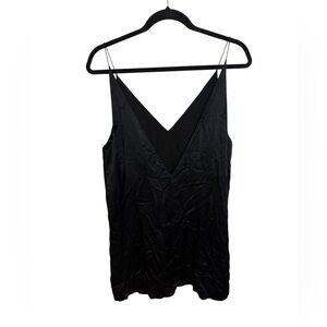 Pre owned excellent condition worn once. Stunning black satin silk v-neck mini slip dress. So classic and beautiful. WOMENS size 4.