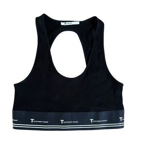 T by Alexander Wang Compact Rib Cutout Crop Top Medium Black