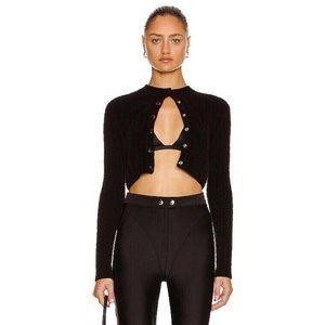 T by Alexander Wang Cropped Jacquard Cardigan Black Snap Buttons