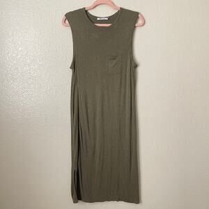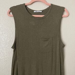 T by Alexander Wang Dress Womens Small Olive Green Overlap Tank Mini Jersey Knit