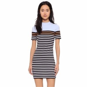 T by Alexander Wang || Engineered Stripe T-Shirt Mini Dress Blue XS