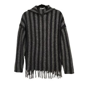 T by Alexander Wang Gray Stripe Hooded Fringe Designer Pullover Sweater Size XS