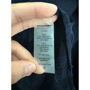 T by Alexander Wang Merino Wool V Neck Sweater Navy Blue Plaid Back Size Medium.