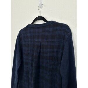 T by Alexander Wang Merino Wool V Neck Sweater Navy Blue Plaid Back Size Medium