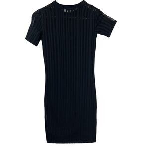 T by Alexander Wang Mesh Overlay Black Bodycon Dress XS LBD Edgy