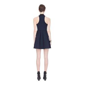 T by Alexander Wang Navy Zip Front Scuba Neoprene Box Pleated Skater Dress Size Medium