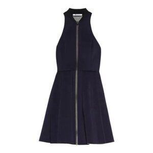 T by Alexander Wang Navy Zip Front Scuba Neoprene Box Pleated Skater Dress Sz M