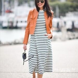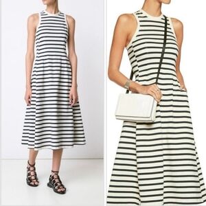 T by Alexander Wang Navy and White Striped Racerback Tank Midi Pocket Dress