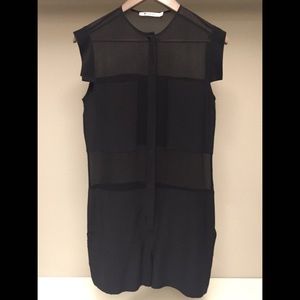 FLASH SALE!! This T by Alexander Wang sheer silk romper features a round neckline with center concealed button down panel, cap sleeves, and two front slant pockets. Romper in dark blue. 100% silk. Excellent condition.
