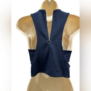 T by Alexander Wang Sleeveless Racerback Cutout Crop Top navy blue back zipper, side cutouts, with elastic band, in a thicker fabric, fitted some stretchy.