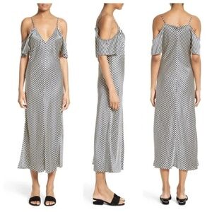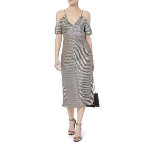 T by Alexander Wang Striped Cold Shoulder Silk Dress