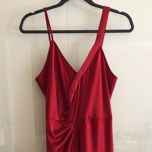 Loooove this dress, but fits a little loose up top. Beautiful satin wrap/ twist-front dress with sewn in snaps - asymmetrical. In color paprika (red). Worn twice and cleaned! Reasonable offers welcome