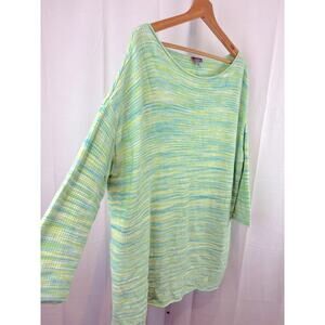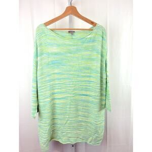 T by TALBOTS 2X Plus Textured Ballet Neck Tunic Sweater 3/4 Sleeve Green Multi