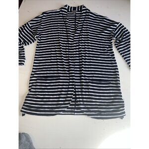 T by TALBOTS CARDIGAN-PETITE MED-BLACK/WHITE STRIPE-3/4 SLEEVES