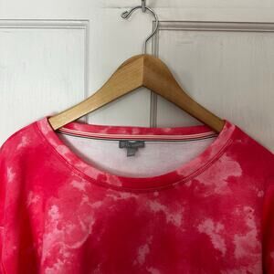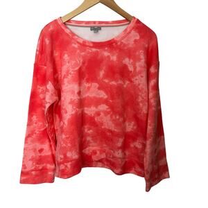 T by TALBOTS Crewneck Sweatshirt Tulip Hem Tie Dye Pullover Large Coral Orange