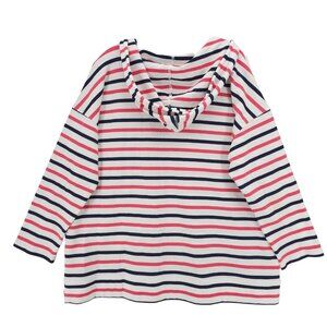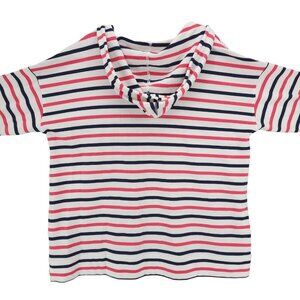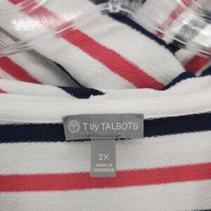 T by TALBOTS Hoodie White Blue Red Striped Cotton Terry Stretch Pullover Size 2X