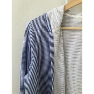 T by TALBOTS Open Front Striped Hooded Cardigan Roll Tab Sleeve Blue White 0X