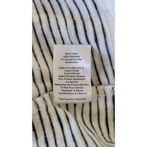 T by TALBOTS White Black Striped Tunic Fringe Hem Top Shirt