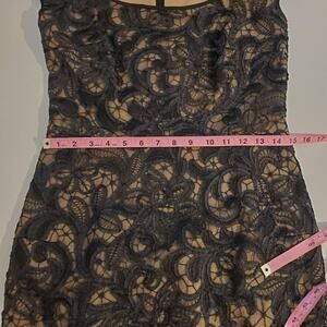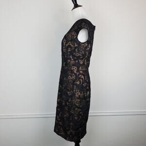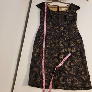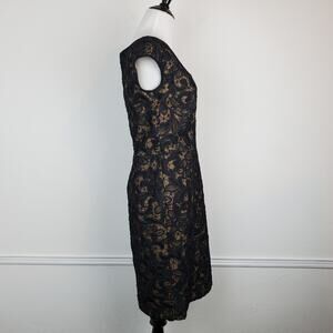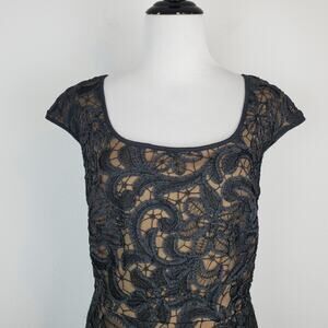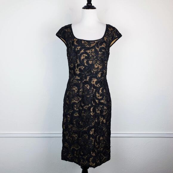 T by Tadashi Dress Lace Paisley Applique Mesh Cocktail Formal Black Tan Size 6