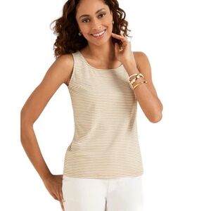 T by Talbots 180° TWO-WAY TANK - BELLEVILLE STRIPE. Tan White Size LP #1118